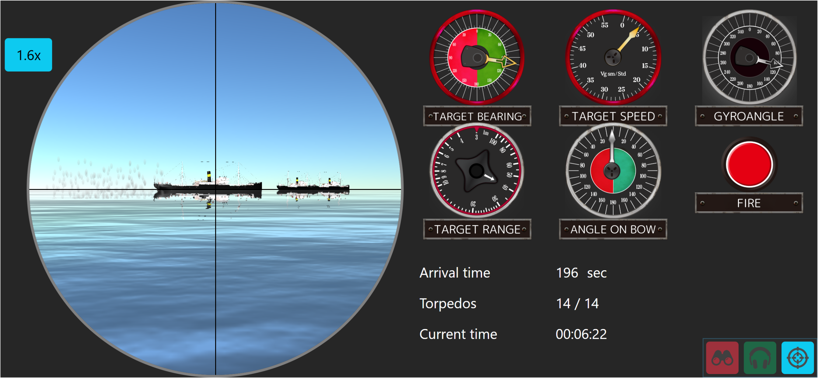 - Target Bearing: Direction from your submarine to the target. Linked with periscope direction and set automatically.